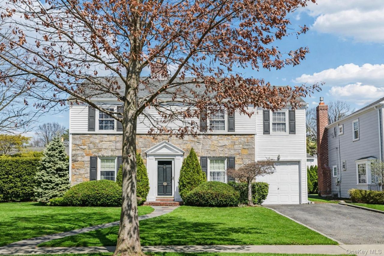 Welcome to this beautifully maintained Colonial in the sought-after Mott section of Garden City, where timeless charm meets everyday comfort. A gracious layout welcomes you with a sun-filled living room featuring a classic fireplace, a formal dining room perfect for entertaining, and an updated kitchen with granite countertops that opens to a bright dining area with skylights and backyard views. The home also offers a spacious family room with vaulted ceilings, a versatile home office, three well-appointed bedrooms, 1.5 baths including a convenient first-floor powder room, and hardwood floors throughout. A full basement provides excellent storage and additional living potential, all ideally located near town, schools, parks, and the LIRR.